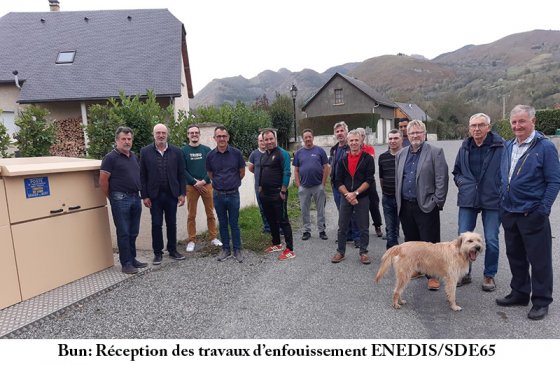 « Les travaux se sont bien déroulés et les délais ont été respectés. Enedis et le SDE65 ont enfoui un véritable labyrinthe de fils. La plus-value paysagère est évidente pour les riverains. Les administrés et les gens de passage pourront de nouveau prendre des photos de notre beau village, situé en zone adhérante à la Charte du Parc National des Pyrénées. » Bernard Peluhet, Maire de Bun (65).