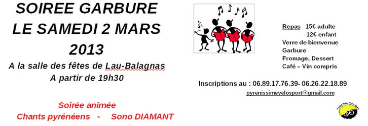 – Bientôt la SOIREE GARBURE du Club de VTT (Pyrénissime Vélo Sport) !